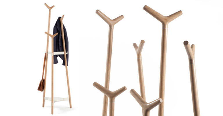 este diseño propone un perchero de madera práctico y funcional.