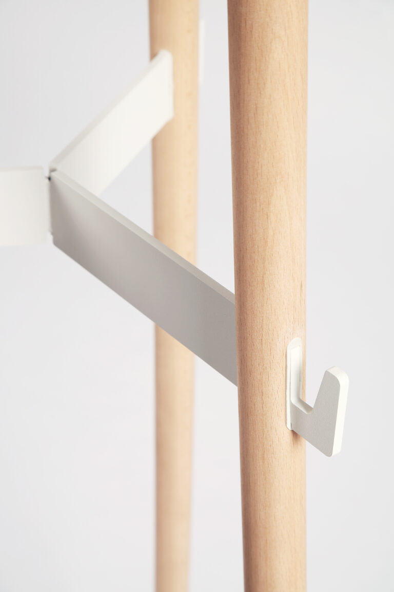 Esta forma permite optimizar la capacidad del perchero y proporciona comodidad al usuario.